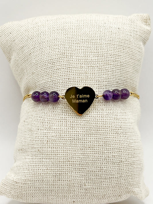 Bracelet Fête des Mères – Améthyste Naturelle & Acier Doré – Cadeau Émotionnel Maman