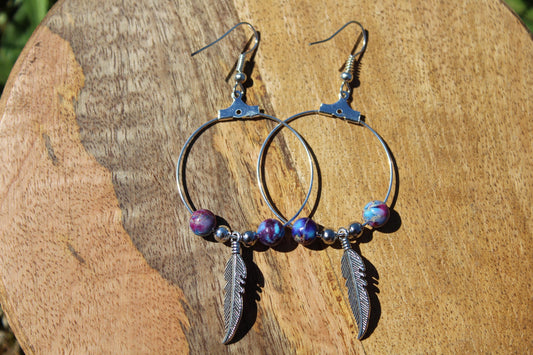 Boucles d'oreilles créoles plume avec pierre naturelle Jaspe Impérial