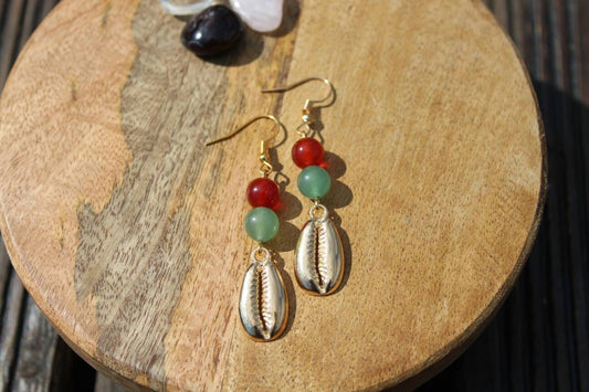 Boucles d'oreilles coquillage avec pierre naturelle Aventurine et Cornaline