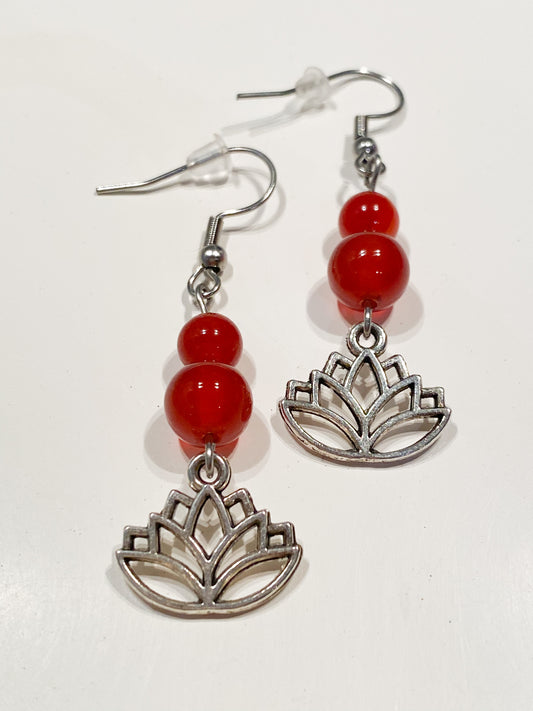 Boucles d'Oreilles en Acier Inoxydable : Élégance Florale avec Fleur de Lotus et Éclat de Cornaline