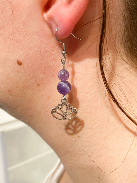 Boucles d'Oreilles Améthyste - Pierre Naturelle Acier Inoxydable
