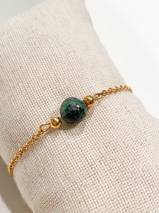Bracelet Rubis Double Rang en Acier Inoxydable Doré – Amour, Énergie & Élégance