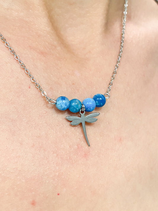 Collier en Apatite avec Pendentif Libellule en Acier Inoxydable - Harmonie Naturelle pour un Style Élégant