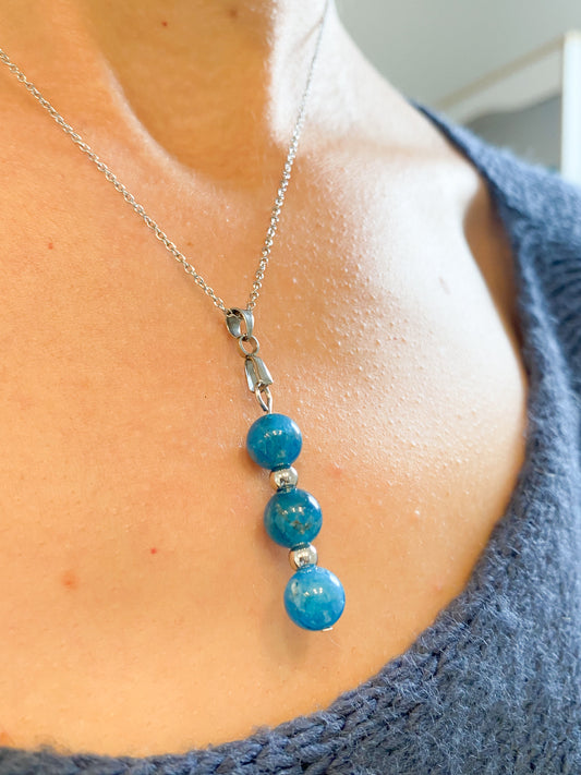 Collier Apatite Bleue – Bijou Femme Acier Argenté – Clarté Mentale & Sérénité