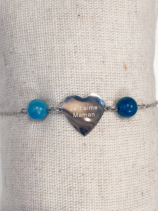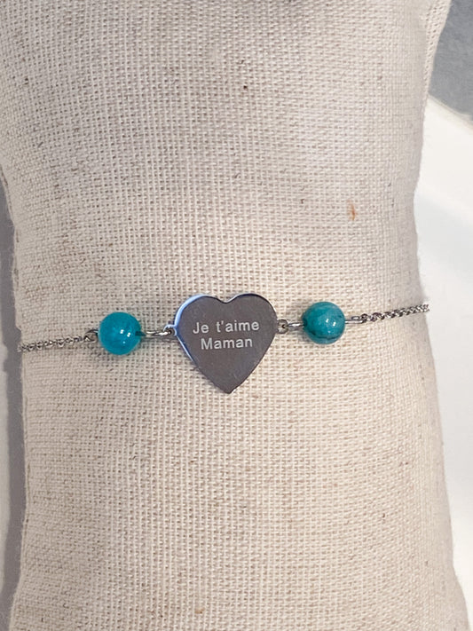 Bracelet coeur Je t'aime maman en acier inoxydable avec pierres naturelles Amazonite