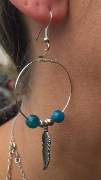 Boucles d'oreilles créoles plume en pierre naturelle Apatite