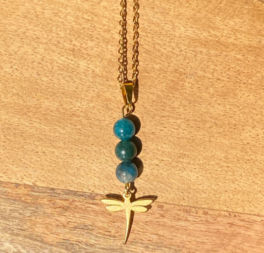 Collier libellule en acier inoxydable en pierres naturelles Apatite