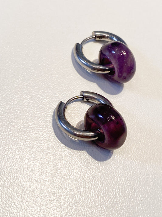 Créoles en Améthyste Naturelle et Acier Inoxydable Argenté – Bijoux Intemporels