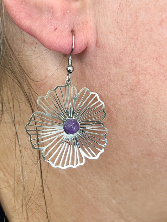 Boucles d’Oreilles Fleur en Améthyste Naturelle – Élégance Féminine & Apaisement Émotionnel