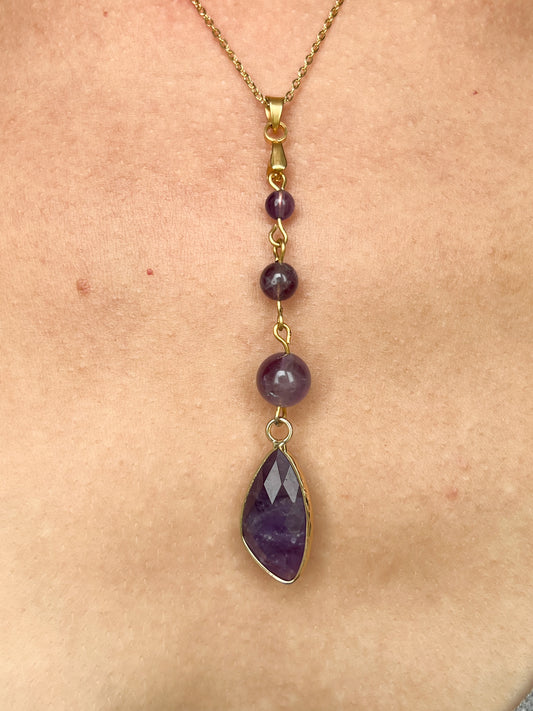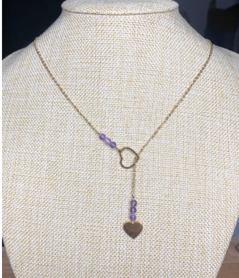Collier en Acier Inoxydable Doré avec Améthyste : Élégance et Raffinement