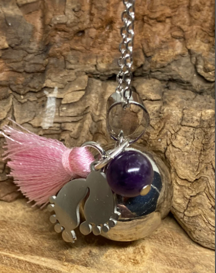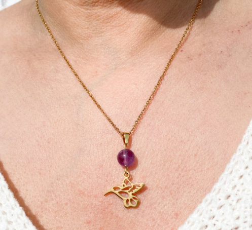 Collier colibri en acier inoxydable en pierres naturelles Améthyste