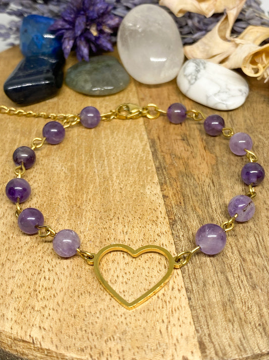 Bracelet Cœur Améthyste Acier Inoxydable - Pierre Naturelle Apaisante