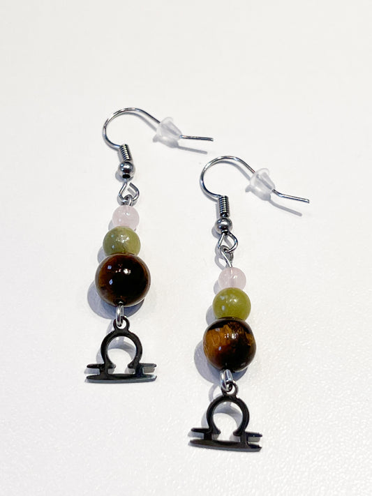 Boucles d’Oreilles Balance en Pierres Naturelles – Bijou Astrologique en Acier Argenté