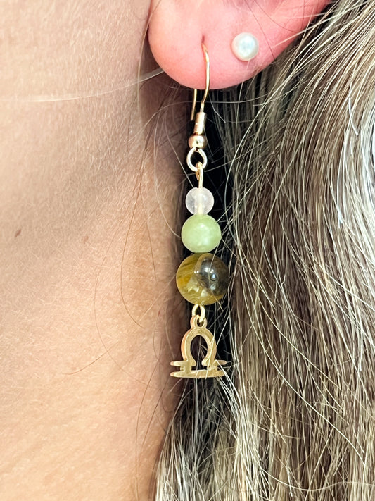 Boucles d’Oreilles Balance – Acier Doré & Pierres Naturelles Astrologiques
