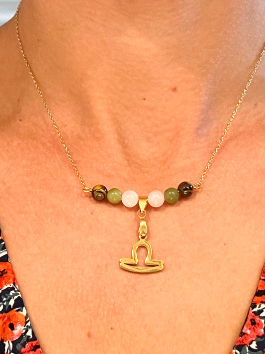 Bijoux Astrologie Balance - Pierres Naturelles Quartz Rose & Jade - Harmonie & Protection