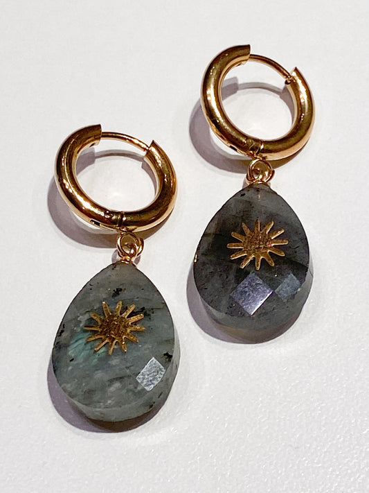 Boucles d'Oreilles en Acier Inoxydable: Éclat Naturel de la Labradorite avec une Touche d'Étoile