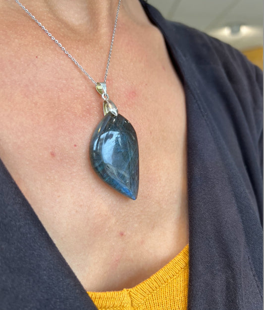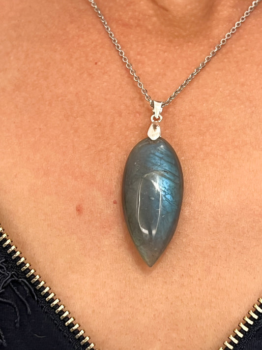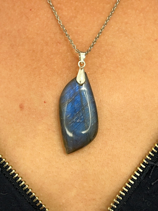 Collier Pierre Labradorite Naturelle – Protection & Lumière sur Acier Argenté