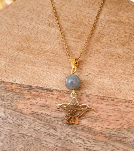 Collier colibri en acier inoxydable en pierres naturelles Labradorite