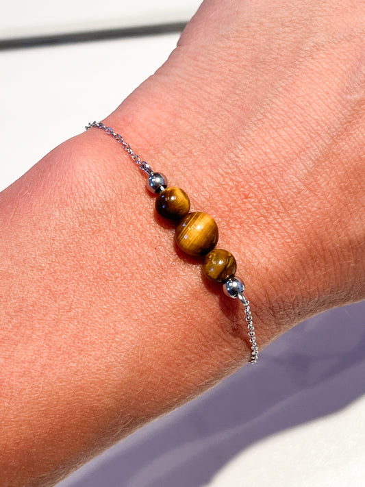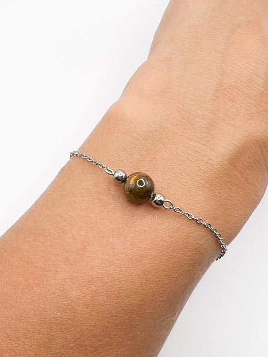 Bracelet Œil de Tigre & Acier Inoxydable Argenté – Protection & Confiance