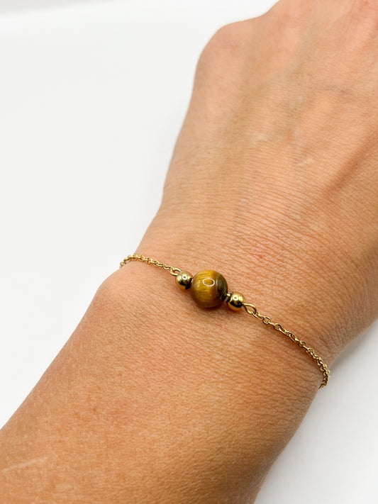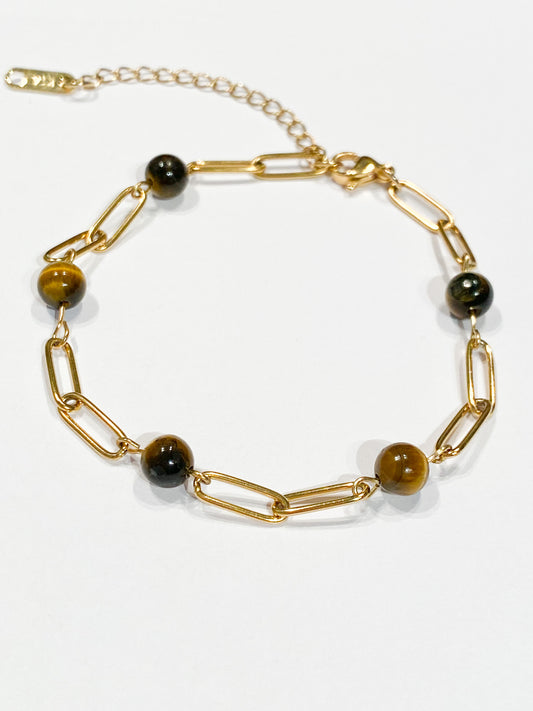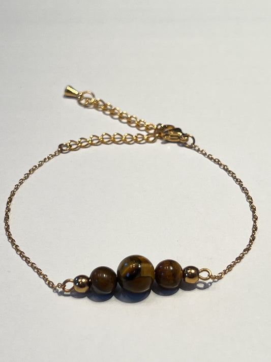 Bracelet en Œil de Tigre et Acier Doré : Style Raffiné et Vertus Protectrices