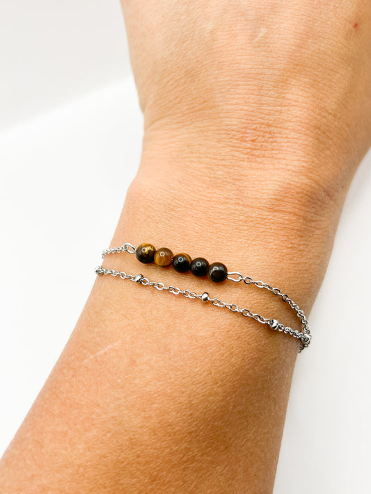 Bracelet Double Rang Œil de Tigre – Bijou Protection & Confiance en Acier Argenté