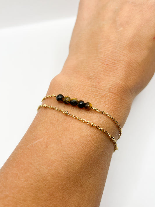 Bracelet Double Rang Œil de Tigre & Acier Doré – Protection, Confiance & Force Intérieure | Bijou Énergétique Naturel