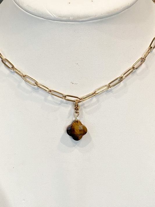 - Colliers en Œil de Tigre, pendentifs en pierres naturelles et chaînes inox