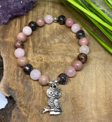 Bracelet Lithothérapie en pierres naturelles Quartz rose, Rhodonite et Rhodochrosite