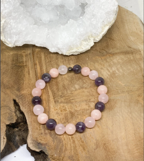 Bracelet Bien-Être Améthyste & Quartz Rose – Harmonie des Chakras & Apaisement