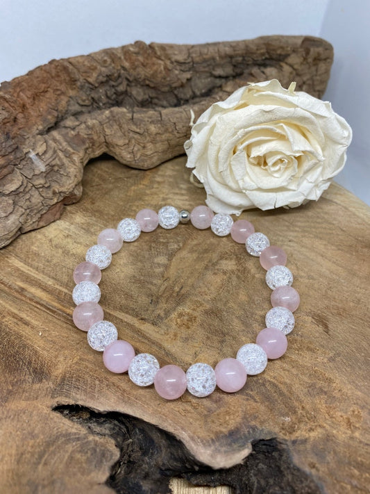 Bracelet en pierres naturelles Quartz rose et Cristal de roche