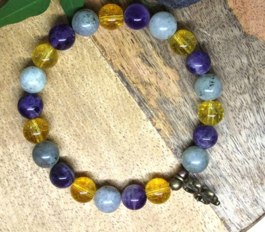 Bracelet Lithothérapie en pierres naturelles Citrine , Améthyste et Labradorite