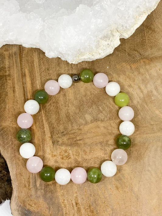 Bracelet en pierres naturelles Jade néphrétique, Pierre de lune et Quartz rose