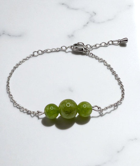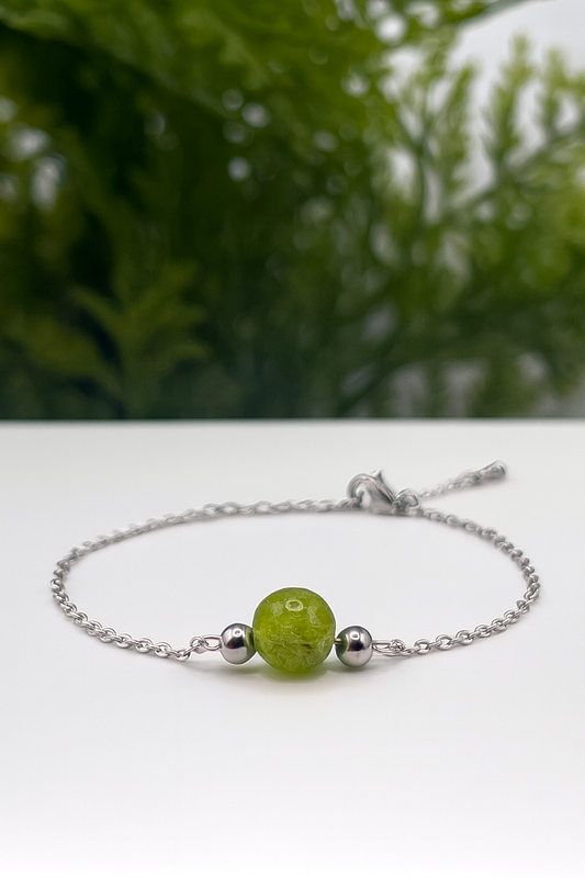 Bracelet Péridot Naturel & Acier Argenté – Vitalité, Protection & Élégance