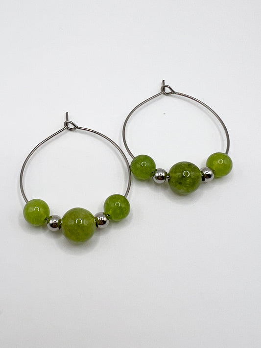 Boucles d’Oreilles Péridot Naturel – Acier Argenté & Énergie Positive