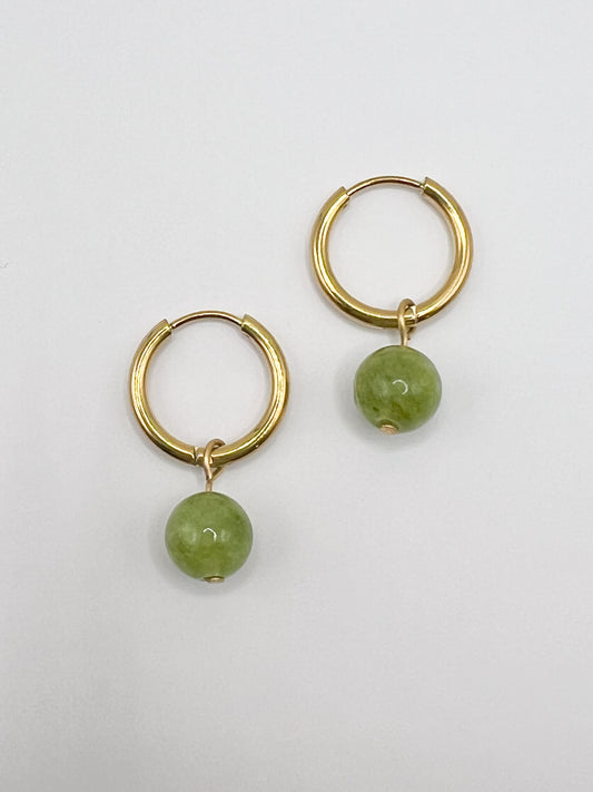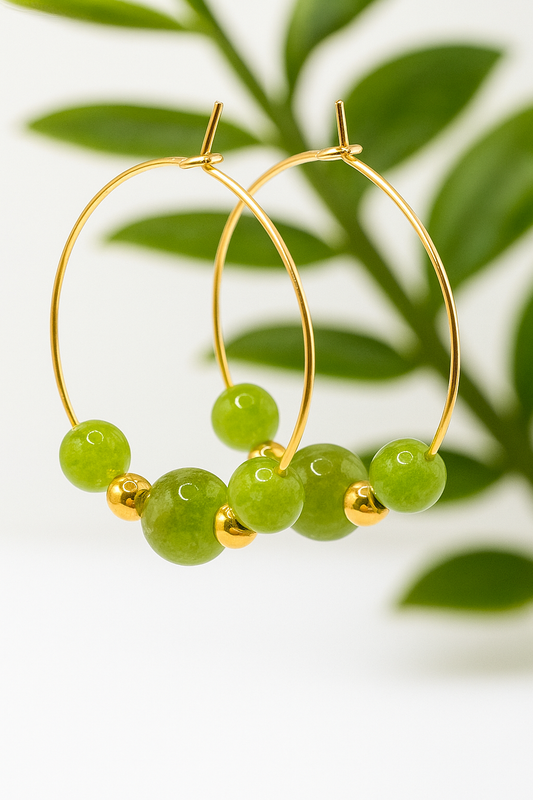 Boucles d’Oreilles Énergétiques en Péridot – Pierre Naturelle & Acier Doré Hypoallergénique