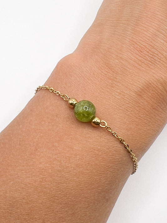 Bracelet Péridot Doré Ajustable – Pierre de Vitalité & Énergie du Cœur