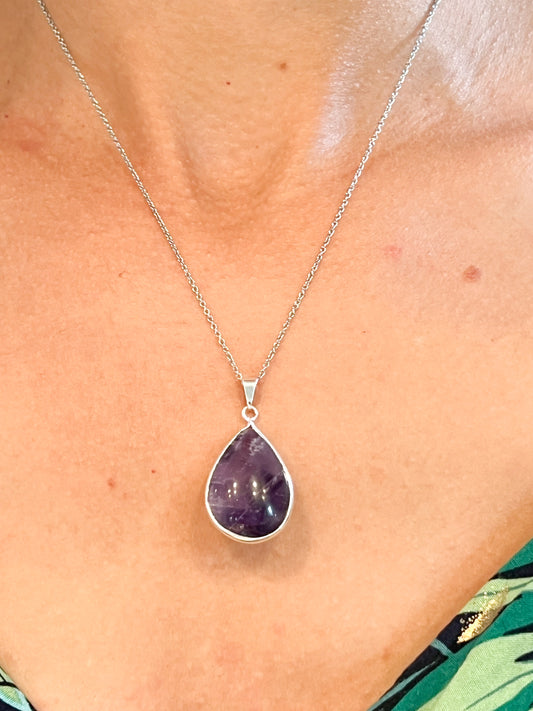 Collier en Améthyste et Acier Inoxydable Argenté – Élégance et Sérénité
