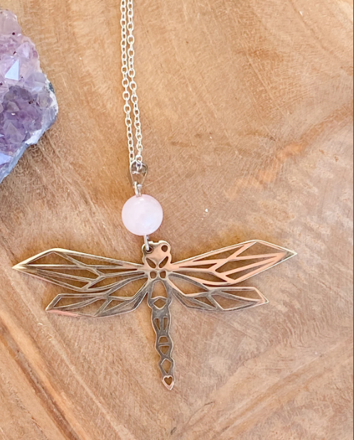 Collier en acier inoxydable avec pierres naturelles Quartz rose