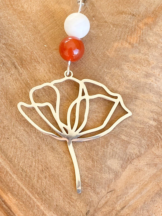 Collier en acier inoxydable avec pierres naturelles Pierre de lune et Cornaline