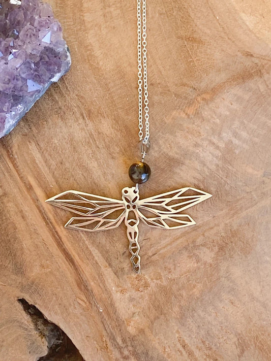 Collier en acier inoxydable avec pierres naturelles Œil de tigre