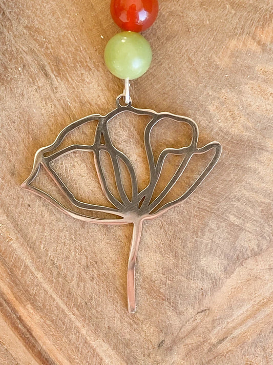 Collier en acier inoxydable avec pierres naturelles Cornaline et Jade néphrétique