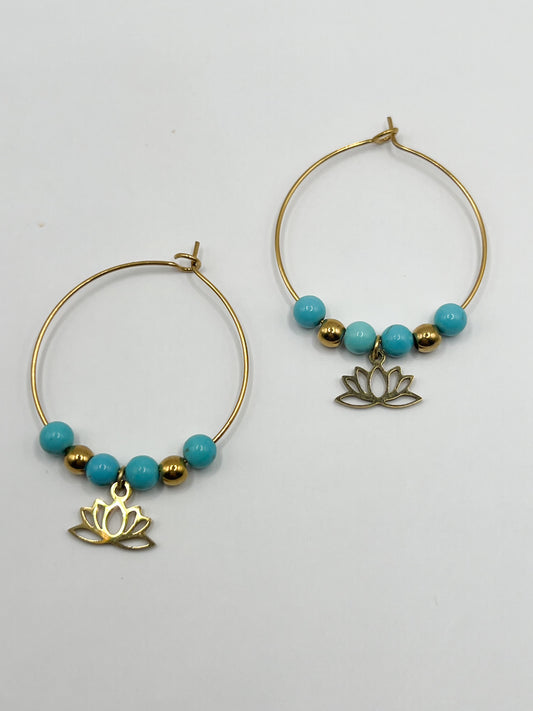 Créoles Turquoise et Acier Doré – Boucles d’Oreilles Bohèmes Chic & Énergie Positive