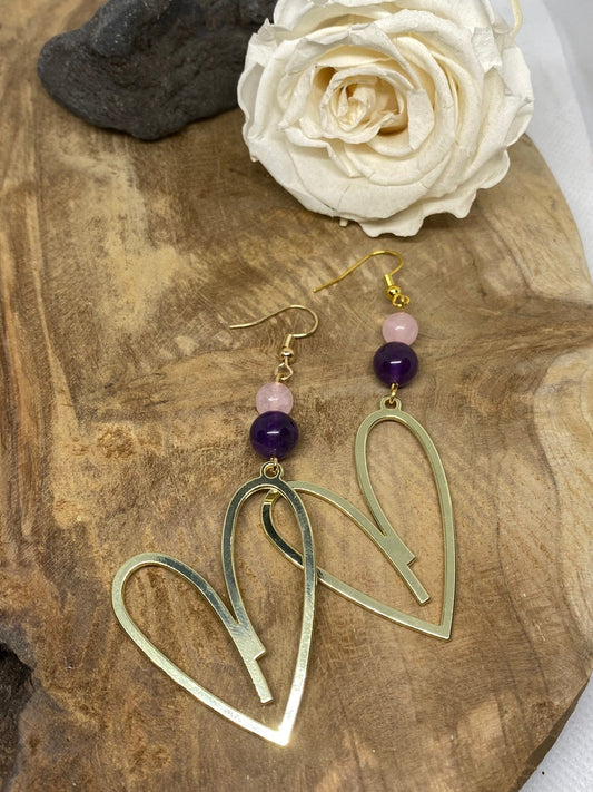 Boucles d'oreilles en pierre naturelle Améthyste et Quartz rose