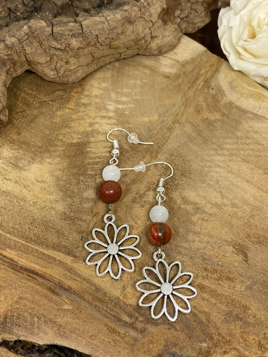 Boucles d'oreilles fleur avec pierre naturelle Pierre de lune et Jaspe Rouge