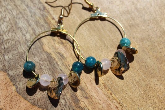 Boucles d'oreilles créoles plume en pierre naturelle Apatite