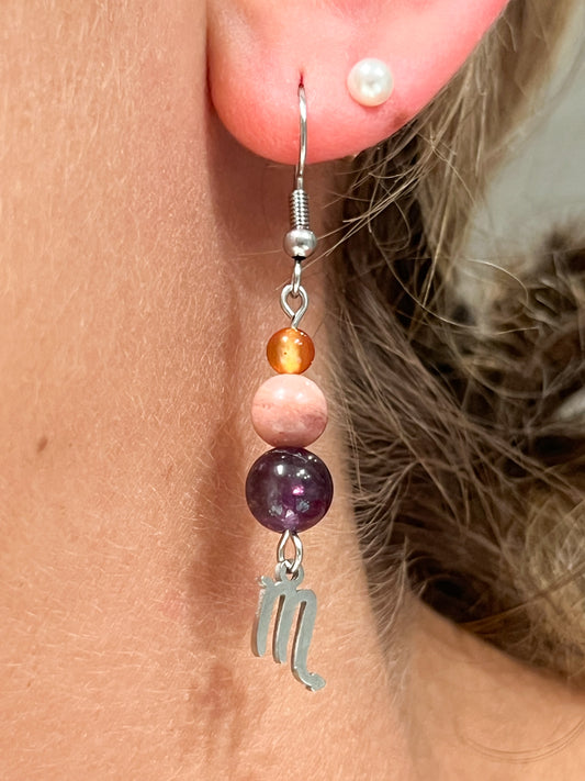 Boucles d'Oreilles Scorpion en Acier Argenté et Pierres Naturelles – Élégance et Énergie