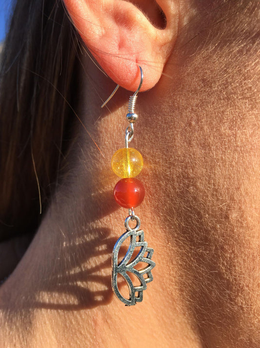 Boucles d'oreilles lotus avec pierre naturelle Citrine et Cornaline