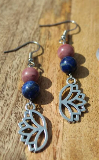 Boucles d'oreilles en pierres naturelles en Lapis Lazuli et Rhodochrosite