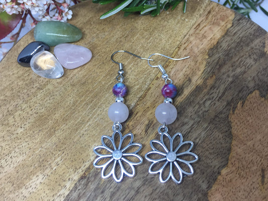 Boucles d'oreilles fleur avec pierre naturelle Jaspe impérial et Quartz Rose
