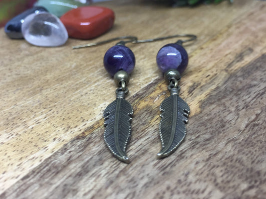 Boucles d'oreilles plume en pierre naturelle Améthyste
